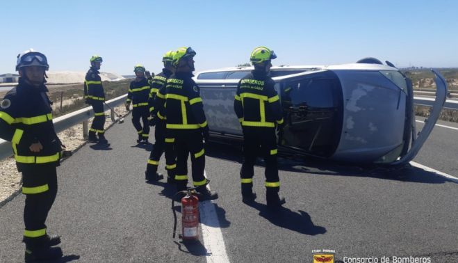 Según han informado desde el Consorcio Provincial de Bomberos de Cádiz, el vehículo ha perdido el control al realizar una frenada brusca y ha volcado de forma lateral. El accidentado ha salido del vehículo por sus propio pie, mientras Bomberos, nada más llegar al lugar del siniestro, ha procedido a estabilizar el turismo y a desconectar la batería.