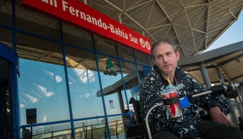 Miguelón consiguió en su día, a través de reclamaciones, que Renfe lo pusiera en marcha, pero la operadora ferroviaria ahora alega que estos trenes de cercanías son accesibles, ya que defiende que cuentan con botones para abrir las puertas de los vagones y que estos disponen de rampas que se sitúan a ras del andén, por lo que considera que no se hace necesario este servicio. Sin embargo, personas como él siguen teniendo graves problemas para hacer uso del tren, incluso antes de llegar al andén, porque ni siquiera alcanza a pulsar el botón del ascensor situado en la avenida Pery Junquera para acceder al apeadero de Bahía Sur. Una vez en el andén, necesita la ayuda de un alma caritativa para poder pulsar el botón de acceso al tren. Si por desgracia no hay nadie en el andén, o ninguno de los usuarios se percata de su situación, se ve obligado a quedarse en tierra. Algo similar ocurre cuando está en el tren de vuelta a Cádiz. “Si no hay nadie, termino en Jerez muchas veces”, lamenta.
