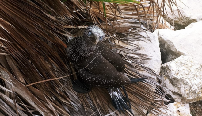 Un ciudadano ha informado a la Policía Local de Puerto Real de la presencia de un ave acuática junto a una palmera ubicada en las piedras que lindan con el mar en el paseo marítimo. El hombre decidió ponerse en contacto con los agentes al ver que el animal parecía encontrarse en problemas.