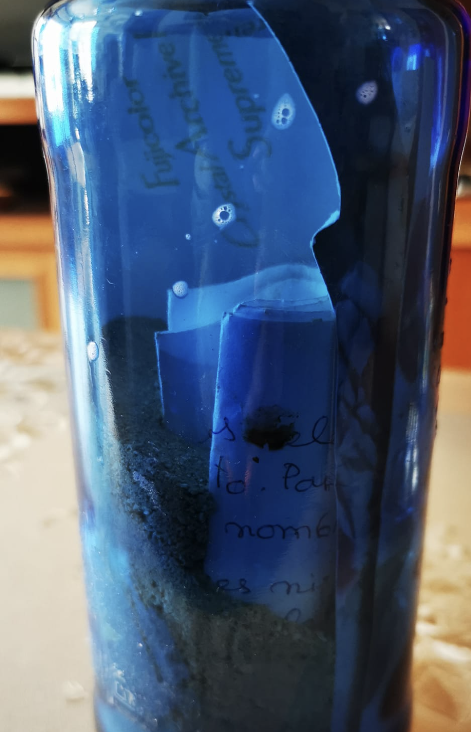 El mar está lleno de tesoros escondidos entre la basura que la población arroja sin conciencia. Una vecina de El Puerto se ha encontrado uno de ellos en la playa de Valdelagrana cuando salió a pasear. En mitad de la arena, divisó una botella de cristal con un tapón de corcho que contenía objetos en su interior.