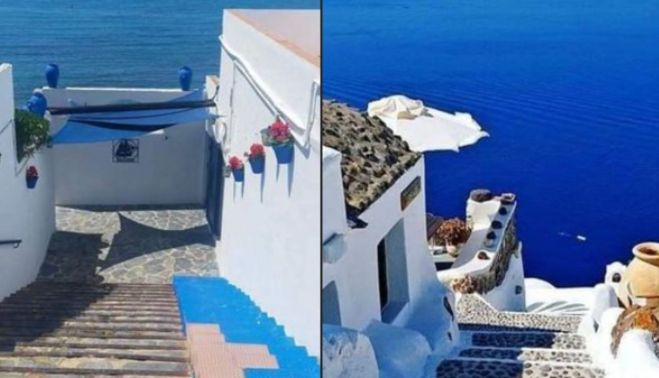 Luisa Sánchez ha subido a las redes, en un grupo sobre las playas de Trafalgar, la imagen de una escalera mirando al mar en la pedanía barbateña. Junto a esta fotografía, ha subido otra instantánea de unas escaleras en Santorini, la isla griega por excelencia.