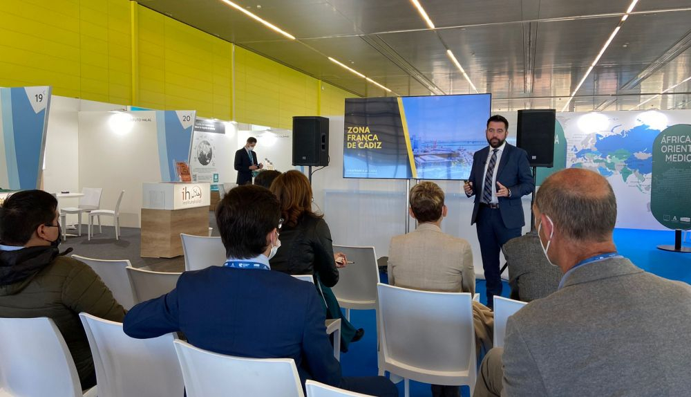 Fran González ha participado con una ponencia titulada Zona Franca, tu puerta internacional que ha tenido lugar en el stand de Extenda y ha registrado un aforo completo con un buen número de asistentes de otros países.