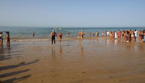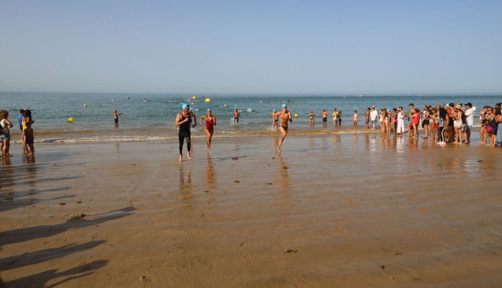 Más de 300 personas entre categorías inferior y adulto se han reunido este fin de semana en la playa de La Costilla de Rota para participar en una competición de natación, con diferentes distancias adaptadas a la edad de cada participante.