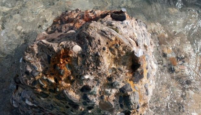 La gran bajada de la marea ha dejado al descubierto en el litoral de Levante de La Línea de la Concepción seis dientes de dragón empleadas en la Segunda Guerra Mundial para impedir un ataque desde Gibraltar a cargo de una fuerza de infantería.