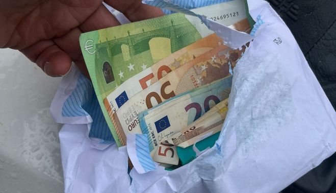 A partir de ese momento, los agentes actuaron con rapidez. Gracias a su intervención, fue posible localizar al sospechoso en la localidad e identificarlo plenamente. Durante la actuación policial, los efectivos comprobaron que el individuo portaba varios billetes envueltos en libretas formando fajos, además de una gran cantidad de billetes de curso legal.
