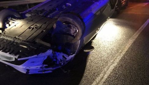 🔴#Accidente de #tráfico con persona atrapada en #Chiclana, en la A48 Km. 3. Cuando llega Bomberos el vehículo se encuentra volcado, con el techo contra el suelo y un varón en el interior.