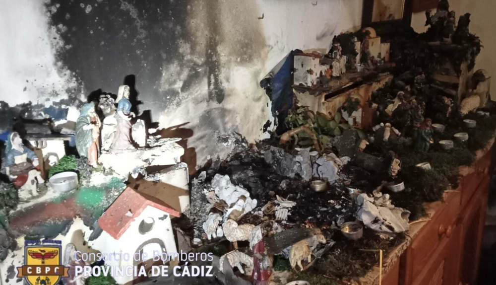Las luces decorativas de un Belén en una vivienda de Chipiona han podido ocasionar una auténtica desgracia este pasado día de Navidad. Bomberos del parque de Chipiona, adscrito al Consorcio Provincial de Bomberos de Cádiz, han necesitado incluso colaboración de una dotación de bomberos de Sanlúcar equipados con dos autobombas, una ligera y otra pesada, así como de otra dotación del parque de Jerez, que finalmente no ha llegado a intervenir.