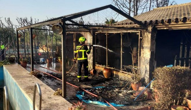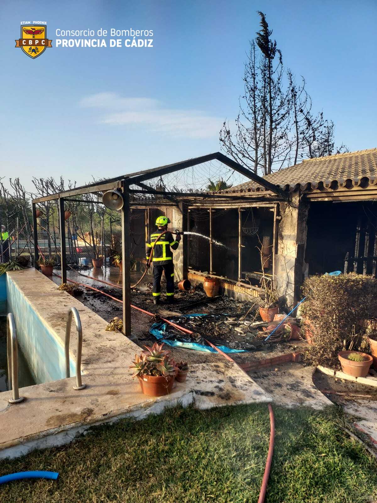 Pese a ello, varias viviendas de la zona quedaron calcinadas por la acción de las llamas. Junto al infoca, se tuvieron que trasladar al lugar de los hechos bomberos del Consorcio de los parques de Cádiz, Tres Caminos y Chiclana. Las dotaciones estuvieron allí presente hasta que a las diez de la noche se dio el fuego por controlado. Dos vehículos autobomba y un Nodriza del parque de Cádiz, una autobomba y otro de rescate del parque de Tres Caminos y otra autobomba de Chiclana fueron empleadas para la extinción. Se usaron unos 20.000 litros de agua.
