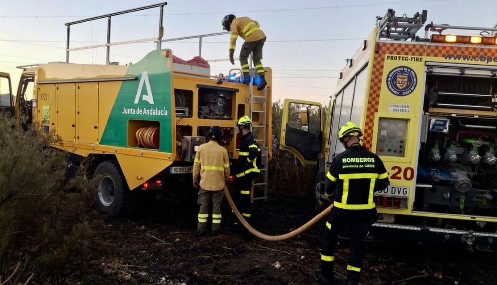 Para sofocar las llamas se emplearon dos vehículos: una autobomba rural pesada (R-20) y una autobomba urbana ligera (P-43). En la intervención participaron cuatro efectivos, que utilizaron alrededor de 4.000 litros de agua. A los trabajos de los bomberos se sumó la colaboración del dispositivo Infoca, encargado de la lucha contra los incendios forestales en Andalucía.