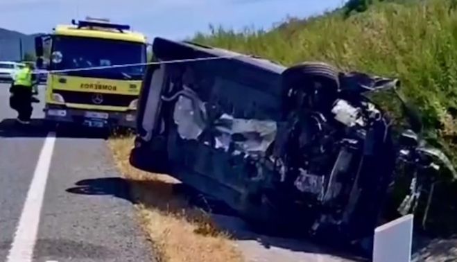 El coche terminó volcado, con daños muy visibles, y el conductor tuvo que ser rescatado del interior antes de ser evacuado por aire. Todo, en una actuación rápida y coordinada en la que dos de los ocupantes lograron escapar por la parte trasera del vehículo, mientras el tercero permanecía atrapado hasta la llegada de los servicios de emergencia.