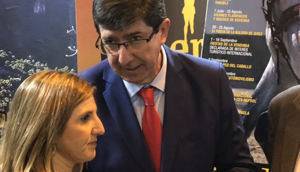 Juan Marín entró en el stand de Cádiz en Fitur como Pedro por su casa. Repartió sonrisas y abrazos, fue centro de todas las miradas y cámaras —tampoco eran tantas—, se le vio departir amistosamente con la presidenta de Diputación de Cádiz y jefa de los socialistas en la provincia, Irene García, y hasta se coló —invitado, eso sí— para posar en la foto de familia de la presentación de la oferta turística de Jerez en Fitur 2018. En otra semana fantástica de Ciudadanos a nivel nacional, con los datos de Metroscopia humeantes en la primera plana de El País del pasado lunes, el sanluqueño Juan Marín no cabía en su chaqueta elegida para el correspondiente paseíllo por Ifema, el mismo día que inauguraba el pabellón andaluz otra sonriente Susana Díaz. "Espérate a que la salude, no sea que piensen que estamos peleados", bromeaba a el presidente y portavoz de Cs en el Parlamento autonómico.