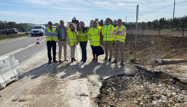La delegada del Gobierno de la Junta de Andalucía, Mercedes Colombo, en compañía de la delegada territorial de Fomento, Articulación del Territorio y Vivienda, Carmen Sánchez, y el alcalde de Medina Sidonia, José Manuel Ruiz, ha visitado hoy la zona de la carretera A-396 donde se están realizando obras de emergencia para reparar los graves daños ocasionados por la DANA.