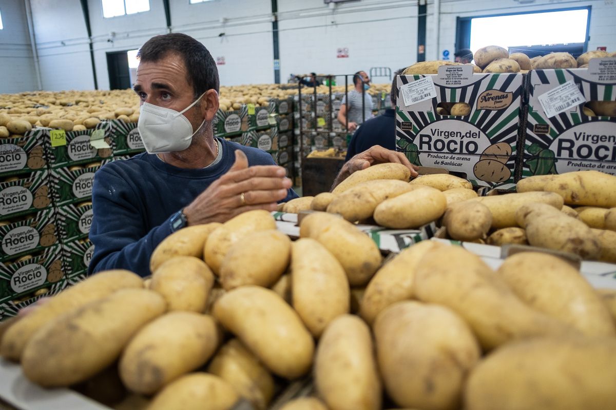Guancho Ibáñez es una de esas personas que viven por y para el campo en La Algaida. Explica que ya el Ayuntamiento buscó una marca, Arenas Finas, para que sirviera como marca colectiva. "Nos encontramos en algunos lugares patatas de otros lugares que se comercializan como si fueran de Sanlúcar porque cogen la caja de las cooperativas". La papa de Sanlúcar, señala, "nunca se lava, y eso es lo que le da valor. Se pone al contraste al sol y es rubia". La cooperativa Virgen del Rocío tiene de empleos directos casi 300 empleos todo el año, más los agricultores. Y así, otras empresas. Aunque "esta tierra vale para casi todo, menos para viña. Lo que le das, lo coge". Y cuenta que la papa quita y quitó hambre. En los años de crisis. Y en los de la actualidad. Porque los jóvenes siguen creciendo con el olor a la arena mojada de los campos.