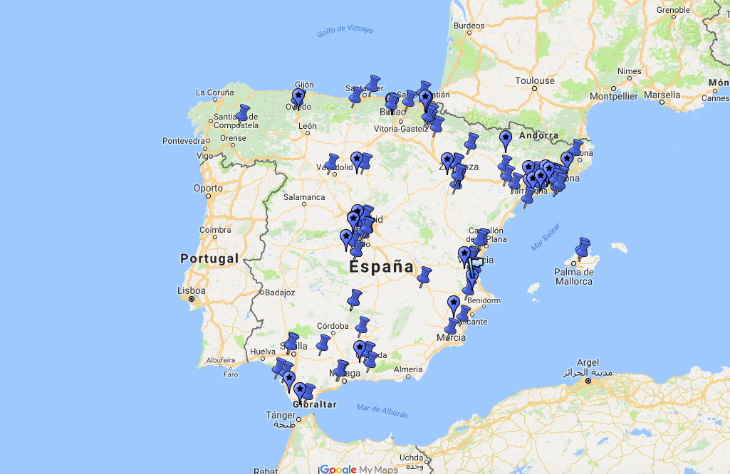 Mapa donde se recoge la campaña #MillionsMissings. Las chinchetas son los afectados por al enfermedad que han participado, las estrellas las ciudades donde se han hecho acciones y las banderas, acciones públicas.