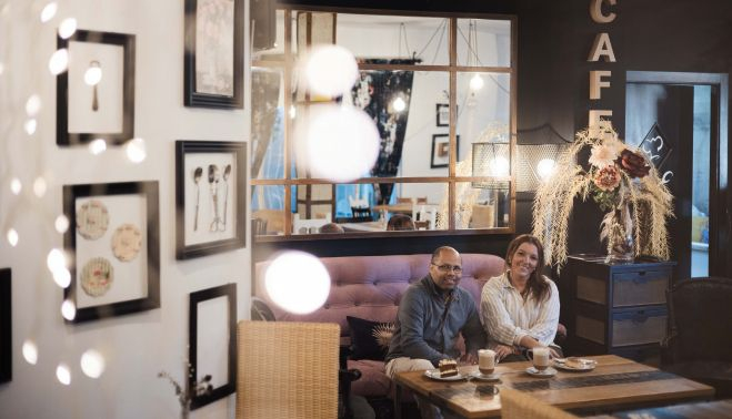 Black & White es el café con repostería casera de Mónica Martín-Arroyo, portuense de 48 años, y su marido Robinson Alcántara, de 49, nacido en República Dominicana. Juntos transformaron tras el confinamiento el restaurante donde funcionó más de 30 años la Venta Durango, regentado por el padre de ella. Y se ha convertido en una cafetería especial donde tomar un dulce recién horneado entre cortinas de flores. En marzo de 2015 el local pasó a ser otro restaurante, pero la pandemia dio un giro al concepto y en 2020 empezaron a ofrecer desayunos, brunch y meriendas. En las mesas no faltan ni flores, ni tarta de zanahoria ni rollitos de canela. El nombre del negocio también está relacionado con su historia de amor. “Se nos ocurrió estando de vacaciones en su país, el logo de nuestro hotel era blanco y negro, super bonito y nos gustó. Además, somos él y yo”, contaban.