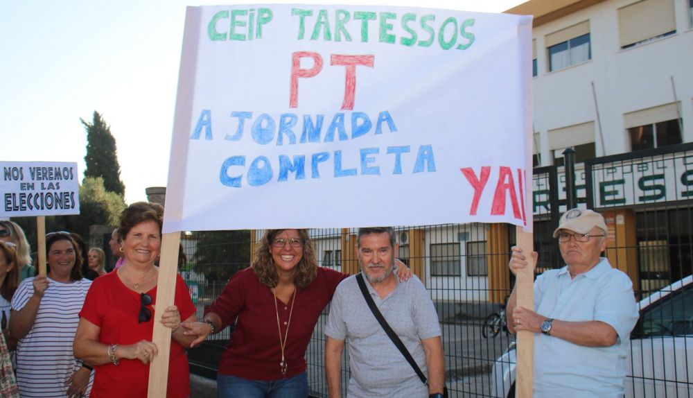 Concentración frente a las puertas del CEIP Tartessos. FOTO: GELI SÁNCHEZ.