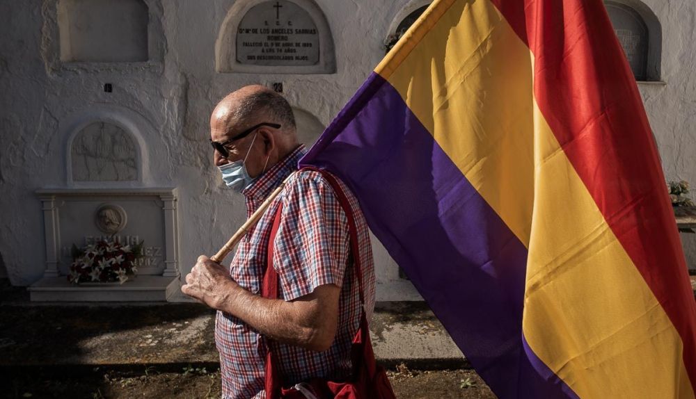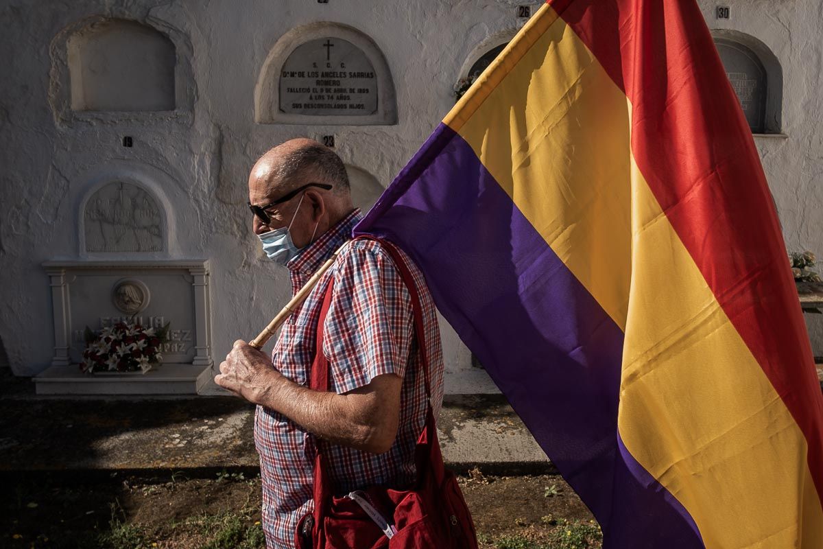Con una bandera republicana, acompañado de su hija, Enrique Rojas -"rojo por dentro y por fuera"-, explica que "aquí están cinco hermanos de mi abuela y un tío mío, un hermano de mi madre, casi ya en los cincuenta. Pudo haber algo de la propia familia". También mataron a su abuelo y a su abuela. En el 74, "se pegó fuego, por lo visto, un tío mío, pero el carcelero era uno de los que mató a mi abuela, a su madre". Lamenta que "todavía hay miedo". De hecho, a su hija, de 28 años, "nunca la han llamado para trabajar" en lo municipal, "ni con PSOE, ni con izquierda, ni la derecha. No le dan trabajo por ser yo comunista", asegura. Acabó siendo concejal por los comunistas del PCE, metido en política desde el 77, "y nunca he cobrado. Mientras más radical sean, más estoy con ellos". "Aquí hay mucho miedo. Parece que se ríen, pero cuando explicas lo que estoy explicando se quedan mirando como diciendo este tío está tonto, pero no se dan cuenta de que los tontos son ellos. Yo conozco a los tontos de lejos". Le han contado, aunque no sabe seguro, que su abuelo "participó en la II República, y dicen que participó en el fusilamiento de un guardia civil. Y entonces, en la República, él iba cuando en el Ayuntamiento le mandaban a coger una vaca, o dos vacas, a quien las tuviera, para darle de comer al pueblo. Pero él era un mandado".