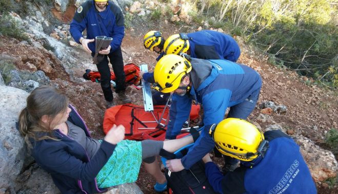 Según ha informado el Consorcio, la mujer sufre una lesión en la pierna derecha, que aparentemente parecer ser una rotura de tibia y peroné. Hasta el lugar se han trasladado un total de siete efectivos de bomberos del Grupo de Rescate en Montaña del con dos vehículos. Una vez en la zona, han colocado a la herida en un camilla y la han transportado durante un ascenso de 800 metros. Posteriormente, han realizado un trayecto por un carril en coche durante un kilómetro, hasta el lugar donde se encontraban los servicios sanitarios.