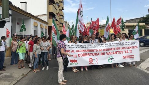 Los trabajadores del centro de menores Manuel de Falla de Jerez no pueden más. Es imposible que puedan atender como merecen a los numerosos jóvenes —conocidos como MENA, Menores Extranjeros No Acompañados— que reciben en las instalaciones, procedentes de comisarías de toda la provincia. “El personal está psicológicamente tocado”, dice Isabel Pajuelo, presidenta del comité de empresa, que porta una pancarta en la que se puede leer: “No al hacimiento de menores en los centros. ¡Cobertura de vacantes ya!”. La manifestación, secundada por los sindicatos Ustea, CCOO, UGT y CSIF, reúne a un buen número de empleados que piden que se cubran las bajas.