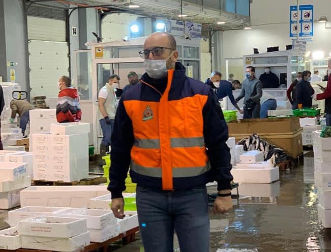 El alcalde de El Puerto de Santa María, Germán Beardo, ha visitado esta semana la lonja portuense para realizar una donación de 200 mascarillas procedentes de la empresa Torrent. “La iniciativa por parte del Ayuntamiento ha sido muy bien recibida por parte de los vendedores mayoristas de la asociación, pues somos un sector que por ser esencial hemos estado trabajando durante el estado de alarma decretado por el Gobierno, y hemos tenido que mover cielo y tierra para poder hacernos de mascarillas", señala Carlos Camacho, presidente de la asociación de vendedores de pescado del mercado de mayoristas de El Puerto (Asoven).