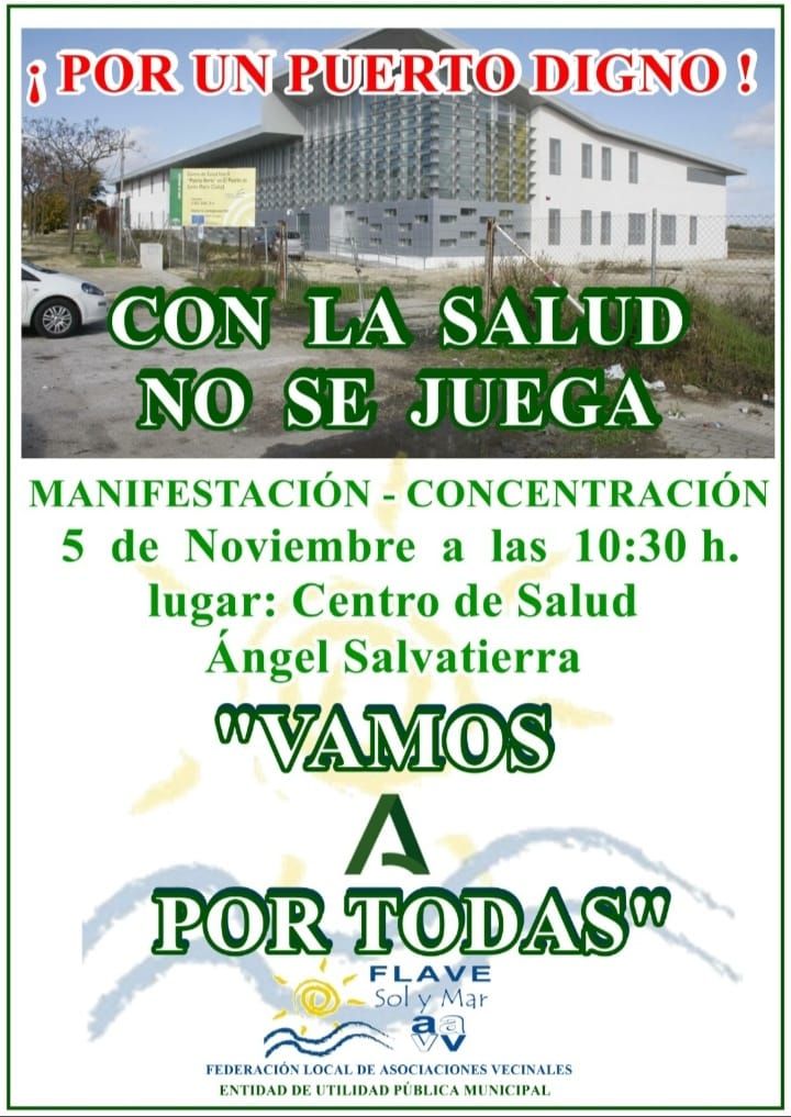 "El Puerto no merece esto. Vamos a por todas", ha reivindicado en el cartel de la concentración que tendrá lugar delante del centro de salud. La Flave no pide "ni trucos, ni tratos" sino "hechos", y saldrá a la calle para dar un toque de atención a la Junta ante este retraso.