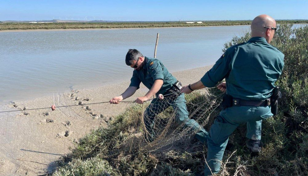 Según explica la Guardia Civil, se trata de una modalidad de pesca no autorizada para embarcaciones recreativas que genera un grave perjuicio para la fauna marina de esta zona protegida, pleno parque natural Bahía de Cádiz.