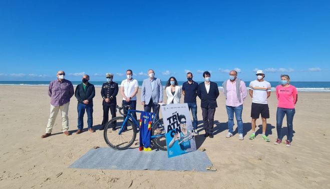 Los concejales de Deporte, Francis Posada y Antonio Rojas, han presentado este martes en la playa del Camposoto el I Triatlón Ciudad de San Fernando. A este acto también han asistido, el coronel de la Junta de Deportes, Juan Carlos Miranda; Conchi Yllanes gerente de Byon Sport, empresa organizadora del evento, representantes de la Federación de Vecinos y triatletas isleños de la talla de María Sierra y Rafael Carralero.
