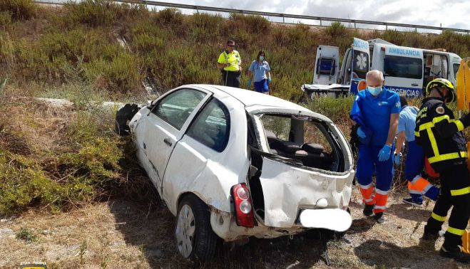 El coche, en el que únicamente viajaba la mujer accidentada, dio varias vueltas de campana, quedando en su posición original pero en medio del campo y a unos 150 metros de la carretera.