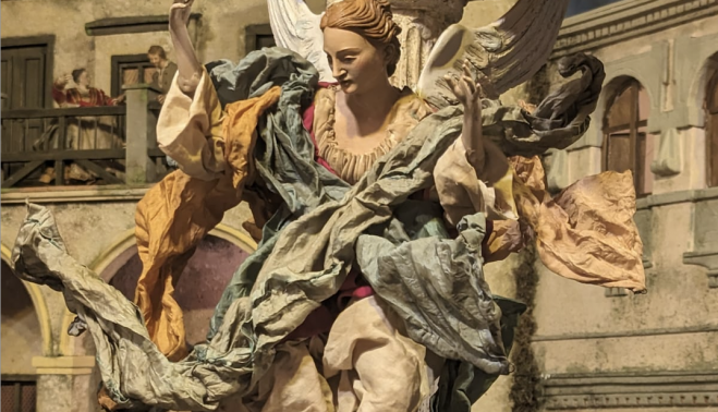 El patio central de la Casa Pinillos acoge hasta el próximo 5 de enero un Belén Napolitano, que recuerda la figura de San Francisco de Asís. Se trata de un nacimiento de corte napolitano que contiene una exposición de valiosas figuras, representando los modelos del siglo XVIII tan extendidos, y que refleja los diferentes tipos y personajes de la sociedad de aquella época.
