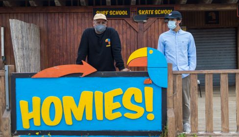 Jaime y Alejo son propietarios de Homies, que apenas empezaban con su actividad hostelera tras dedicarse los primeros años -desde 2013- al surf, con clases y tienda especializada, además del skate, con una U a unos metros de la playa. Llevan décadas en la zona, atraídos por esos momentos de olas, pero verla tan casi solitaria ni siquiera les recuerda a cuando era un paraje. "Son muchos gastos y poca ayuda", lamentan. "Hay gente todo el año. Enero y febrero son los meses más bajos de facturación, pero se nota con turistas alemanes. Nosotros apostamos por desestacionalizar", señalan. El verano ha sido de un turismo de "peor calidad, pero dio para pagar lo que dejó el confinamiento". Y en septiembre volvió a bajar con el nuevo aumento de casos.