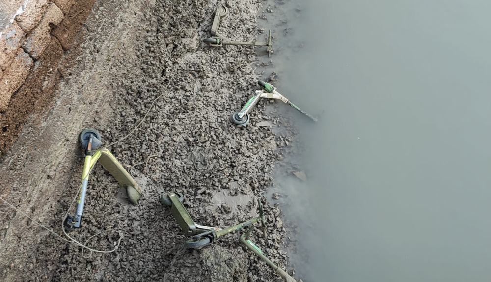 Ya no solo no los estacionan en sitios adecuados sino que los tiran para que queden inutilizados. "¿En serio hacen falta tantos millones para pagar más seguridad en cámaras de vigilancia para evitar estas cosas?" , expresa un residente que ha compartido en redes sociales imágentes de los patinetes en la orilla del río.