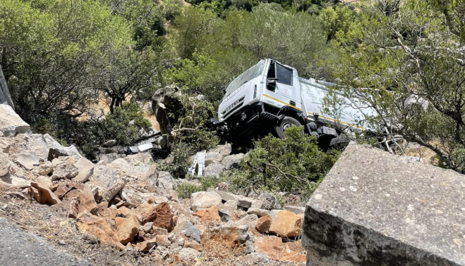 Tremendo susto en la Sierra de Cádiz. Y, al menos, pese a lo aparatoso del accidente, por suerte puede decirse que todo ha quedado en un tremendo susto. El Ayuntamiento de Benaocaz, localidad de la serranía gaditana, ha informado de que el pasado lunes por la mañana, su vecino y operario de la limpieza en el municipio, Javier, sufrió un accidente de tráfico mientras circulaba con el camión de la basura.