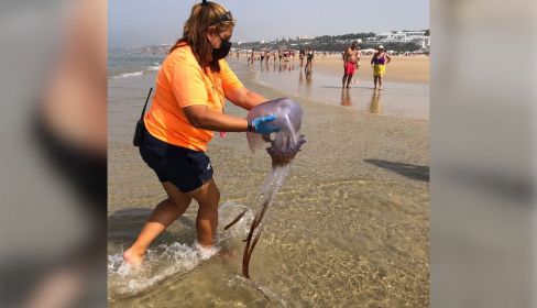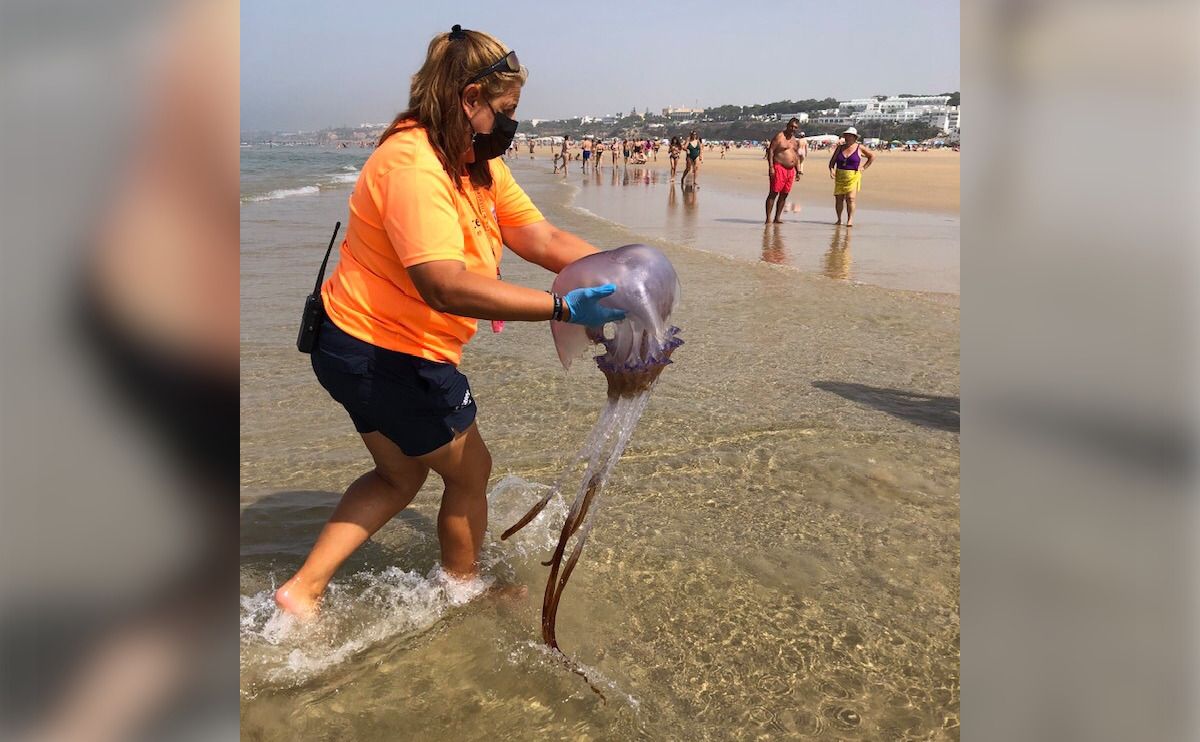 La presencia de las medusas es más habitual en aguas más cálidas, especialmente en zonas encerradas entre espigones, pero también en Conil, abierta directamente al Atlántico.