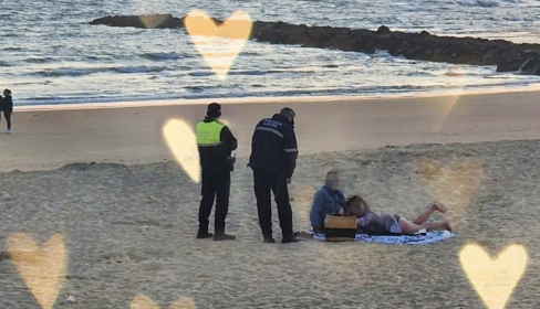 La Policía ha publicado una imagen del momento en el que los agentes se acercaron a la pareja para "cortarles el rollo". "Queridos amantes de la playa, nuevamente viva el amor, pero aguantaos un poquito e iros a un hotel", añaden en Facebook donde algunos vecinos han aplaudido la acción. "Que poca vergüenza. Ya no hay respeto", ha reaccionado una mujer.