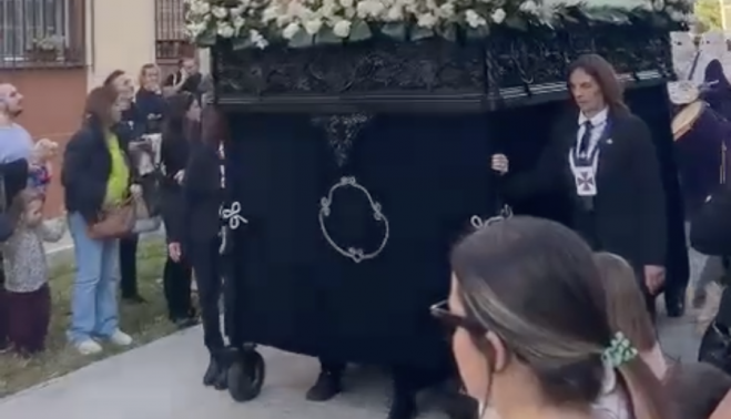 Con esta situación, este Jueves Santo el paso de la Trinidad ha procesionado con ruedas, al no haber costaleras suficientes para cargarlo. Debajo solo iban doce mujeres, insuficientes para poder llevarlo. El resto de la cuadrilla, la acompañó desde fuera.