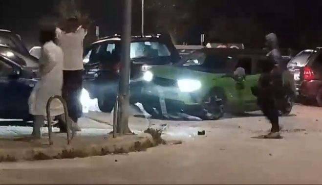 Uno de los coches queda completamente destrozado e, incluso, son varias las personas que se unen para intentar volcarlo después de haberle propinado numerosos golpes con los palos que tenían. En otro de los vídeos, grabado desde un balcón, se observa al mismo coche derrapando por la zona al mismo tiempo que se oyen gritos y amenazas