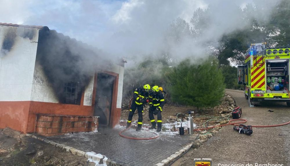 Bomberos del parque de la referida localidad serrana han tenido que intervenir para sofocar el fuego. A su llegada al lugar, el propietario alertaba de un extra que añadía más peligrosidad al incendio: en el interior de la caseta había varios depósitos con gasoil.