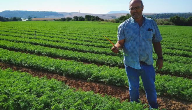 En la Finca la Soledad de Arcos (Cádiz), desde primera hora de la mañana, Antonio Ramos, uno de los hermanos ‘Pichale’, se encuentra metido en faena. Hoy toca siembra de zanahoria. Unas 12 hectáreas de las casi 60 que puede llegar a tener dedicadas a este cultivo con el que ya lleva cinco años. Y que no es el único, ya que este agricultor y su hermano van cambiando de producción según ande el mercado. “Hago números —dice Antonio Ramos— y si no me salen, no siembro”. También tienen 20 hectáreas algodón y unas 700 de secano.