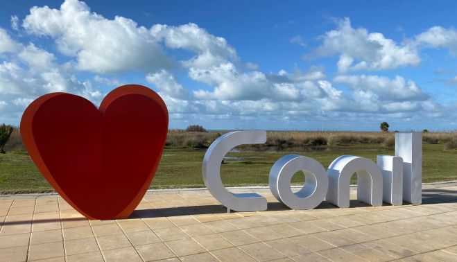 "Informar también que el monumento turístico que se encontraba anteriormente, el corazón con las letras I Love Conil, fue retirado por encontrarse en mal estado debido al salitre. Una vez reparado, en breve se procederá a reubicar en un punto de igual y singular belleza en nuestro pueblo, para que sea otro punto de interés turístico y fotográfico".