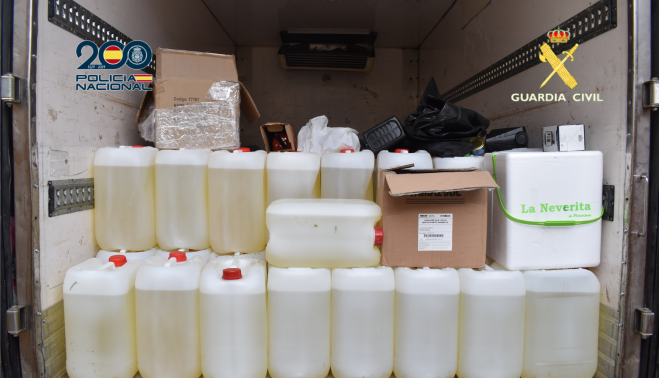 Durante ese dispositivo, los agentes dieron el alto al vehículo y realizaron una inspección de su interior. En la zona de carga localizaron más de 200 garrafas que, según las primeras comprobaciones, contenían gasolina o gasóleo. La cantidad hallada llamó la atención de los actuantes, que solicitaron al conductor explicaciones sobre la procedencia y el destino del combustible transportado.