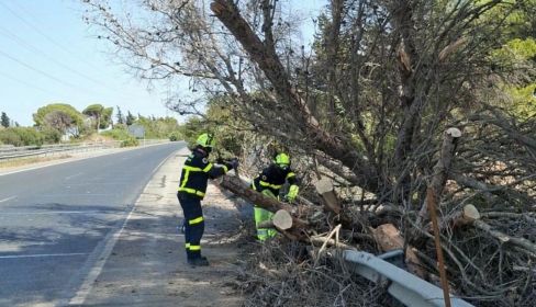 El aviso se produjo a las 14:15 horas, cuando el árbol bloqueó parte de la vía. Hasta el lugar acudieron cuatro bomberos con un camión de intervención. Los trabajos contaron con la colaboración de la Guardia Civil y del servicio de Conservación de Carreteras, que se encargaron de regular el tráfico y garantizar la seguridad de los conductores mientras se retiraba el ejemplar.