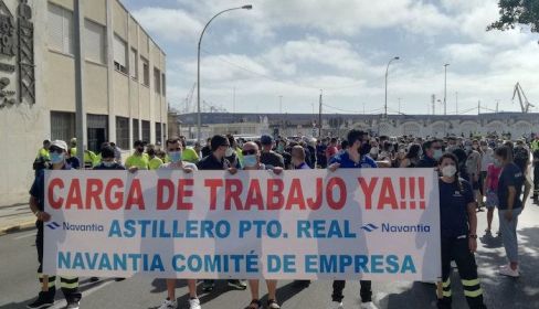 Posteriormente, la marcha ha proseguido por la avenida de Astilleros, donde se han incorporado operarios de la factoría de Cádiz, y ha finalizado en torno a las 11:30 horas en la Subdelegación del Gobierno, donde Forné ha entregado un escrito al subdelegado, José Pacheco, con el fin de transmitir su protesta. "Independientemente con que el Gobierno este de acuerdo o no con la causa que origina la movilización, si creo que es una obligación atenderla. Es lo que hago desde que soy subdelegado", ha añadido el concejal.A la manifestación se han sumado las voces de los trabajadores de las contratas de Navantia, además de los representantes de los comités de empresa de las factorías de Airbus en la provincia, que han cerrado la fila. Los empleados también han contado con el apoyo de los representantes políticos.La diputada provincial de Adelante Cádiz, Lorena Garrón, ha subrayado que van a estar "siempre de su lado, porque la Bahía está muerta sin industria y no se entiende sin sus astilleros, el sector naval es un sector estratégico de nuestra economía pero además, es nuestro pasado, nuestro presente y nuestro futuro". Garrón también ha reivindicado la "necesaria reconversión y diversificación de la producción de los astilleros para asegurar la viabilidad de las plantas gaditanas".Los empleados que temen por sus puestos de trabajo están "desesperados, queremos barcos". Según explican, "Puerto Real tiene un problema muy grande y es el dique es enorme, el más largo de Europa, y es muy difícil traer barcos que lleguen a llenarlo". El colectivo asegura que "los barcos que entran en la dársena solo pueden trabajarse en un solo lado, o por babor o estribor, y no por ambos lados como ocurre en el astillero de Cádiz, lo que supone que se pierda el 50 % de la posible carga de trabajo que pueda tener".La plantilla de Puerto Real continuará sus protestas a pesar de que el Ministerio de Hacienda haya autorizado el gasto de 167 millones de euros para la construcción del Buque de Acción Marítima de Intervención Subacuática (BAM-IS) en el astillero portorrealeño. Según Forné, "no es la primera vez que sale la noticia de que nos adjudican el BAM. Estamos esperando a que llegue la chapa, que haya un Consejo de Ministros que lo ratifique y que se reciba la orden de ejecución".El contrato del BAM-IS supone para la Bahía de Cádiz una carga de trabajo de 1,3 millones de horas. Durante tres años y medio se generarían 1.115 empleos anuales, entre directos, indirectos e inducidos. De esta cifra, casi 160 serían empleados directos de Navantia, otros 290 de la industria auxiliar y 665 puestos de trabajo generados por suministradores.Por su parte, Pacheco ha destacado que este contrato "viene a demostrar que el Gobierno de España se ha tomado en serio a la Bahía de Cádiz" mientras que la diputada proncincial Carrión espera que "que se den pasos firmes para que la plantilla de Puerto Real pueda empezar a trabajar en este proyecto cuanto antes".La presidenta del comité de la empresa naval también ha exigido "el resto de compromisos del Plan Estratégico para Puerto Real en toda su extensión", es decir, los ferris para el Ejército de Tierra TLET (buque de Transporte Logístico Ecológico y Trivalente) para transporte de personal y material, que a día de hoy no tienen fecha de ejecución y supondrían un millar más de empleos.