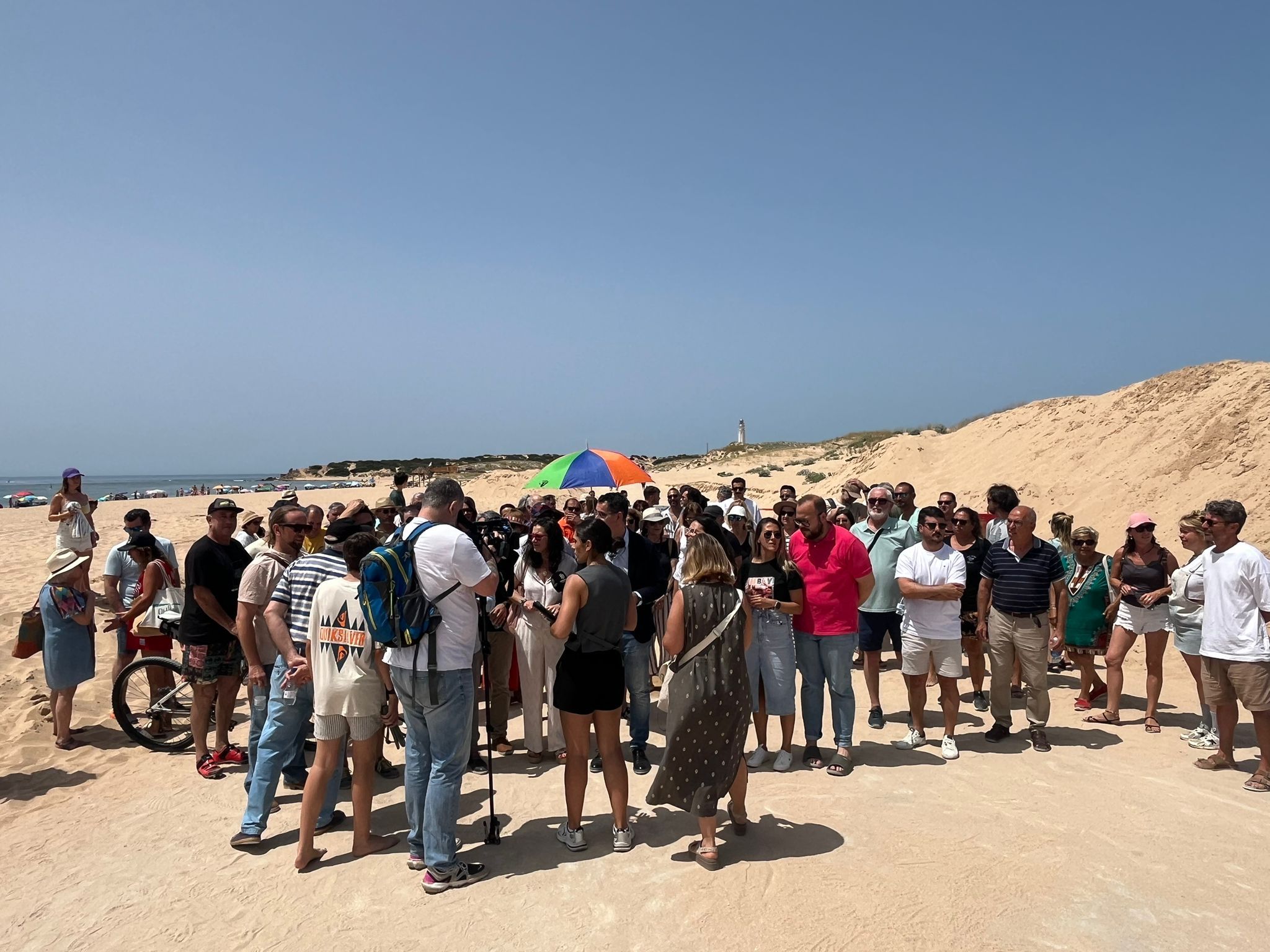 El alcalde Miguel Molina y el delegado de Playas, Juan Miguel Muñoz, ambos de la formación Andalucía x Sí, tomaron la palabra en nombre de colectivos y asociaciones de la zona para exigir "la regeneración" de la playa "con la arena que se está retirando de la carretera del Faro de Trafalgar".