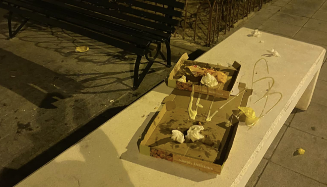 Un grupo de personas decidió cenar en esta zona. Los amigos pidieron la comida para llevar y se sentaron tranquilamente a degustarla. Todo normal hasta que finalizó la velada y una vecina presenció cómo dejaban los residuos en el banco sin ningún tipo de reparo. "Compraron en la bocatería cercana y se sentaron aquí. El problema viene cuando estos individuos se levantan y dejan este regalo precioso para nosotros, los vecinos del barrio que tenemos que ver cómo ensucian nuestra zona", manifiesta en Facebook.