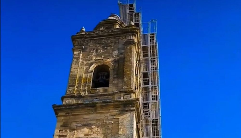 La Iglesia de Santa María la Coronada en Medina Sidonia todavía mantiene el andamiaje que se colocó para su reparación tras los estragos del temporal Bernard en el municipio de la provincia de Cádiz. Han pasado seis meses y la estructura continúa visible en este Bien de Interés Cultural (BIC) datado del siglo XX que sufrió daños en la torre y en la cúpula.