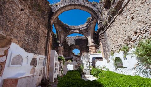 El cementerio se sitúa en la parte alta del pueblo, en la iglesia del Salvador de 1722 que se quemó durante la guerra de la independencia. Las ruinas del edificio arropan a las sepulturas de los vecinos de este municipio gaditano dando lugar a un enclave con encanto que conserva su carácter sagrado. Los nichos más antiguos se encuentran incrustados en los viejos muros de la iglesia, mientras que algunas tumbas se distinguen en el suelo y permanecen junto a los nichos más modernos. El camposanto tiene un valor arquitectónico singular, y aunque no existe documentación de la construcción de la antigua iglesia, algunos historiadores apuntar a que han llegado a pasar tres civilizaciones.