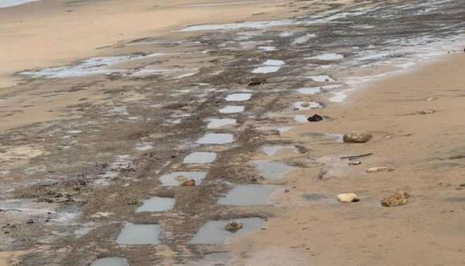 Las recientes borrascas y temporales en la costa de Rota (Cádiz) han provocado una enorme pérdida de arena en la playa de Punta Candor, dejando al descubierto una misteriosa estructura rectangular parcialmente sumergida que hasta ahora permanecía oculta bajo el sedimento. El fenómeno ha permitido observar varias decenas de cavidades alineadas en la zona intermareal, que retienen agua en su interior y dibujan un patrón geométrico visible a simple vista.
