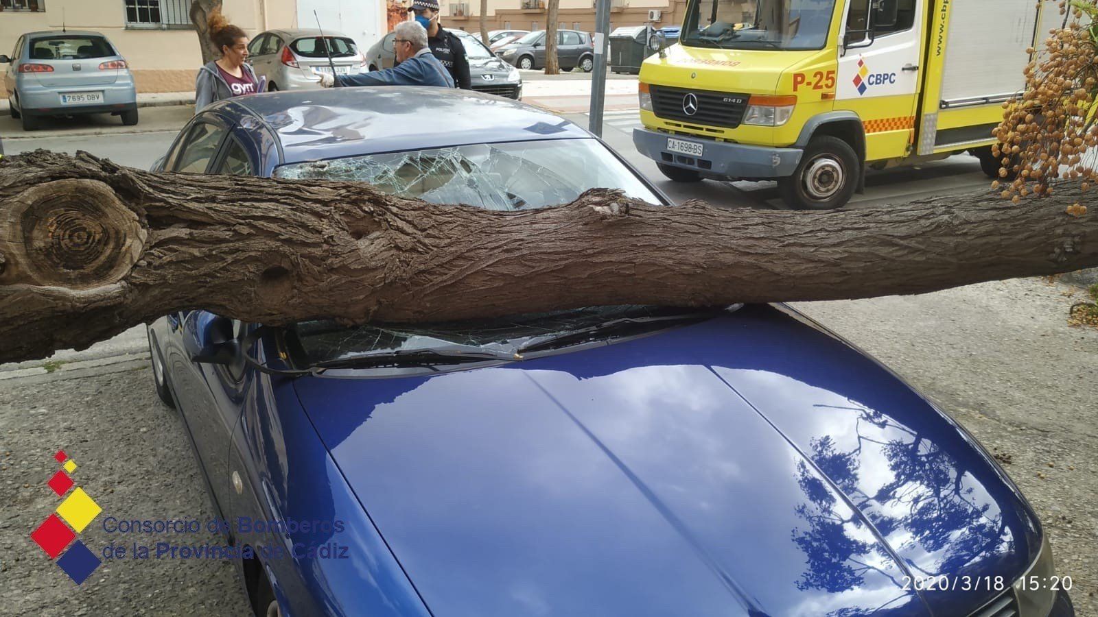 San Fernando ha tenido ocho actuaciones por viento, entre ellas cuatro árboles. Uno de ellos ha caído sobre un coche en la calle El Pardo. Chiclana ha tenido seis actuaciones para retiradas, con la caída de un árbol de grandes dimensiones en Camino Antonio Romero sobre unos cableados eléctricos trenzados sobre la valla de un chalet, una actuación que se ha prolongado durante varias horas. También han tenido varias salidas sin incidencias reseñables Cádiz, Ubrique y Tarifa.