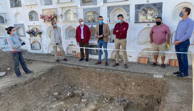 Por su parte, Moreno ha departido con parte del equipo técnico, que ha sido contratado por el servicio de Memoria Histórica y Democrática de la Diputación de Cádiz, junto al alcalde de Jimena, Francisco Gómez, y familiares de vecinos que fueron represaliados tras la sublevación que provocó la Guerra Civil española. El trabajo a pie de fosa, coordinado por el arqueólogo Jesús Román, concluirá esta semana. Tras cubrir esta etapa se llevará a cabo el estudio antropológico de las osamentas recuperadas, con el propósito de determinar de una manera rigurosa la edad, sexo, talla, características morfológicas y odontológicas de cada persona.