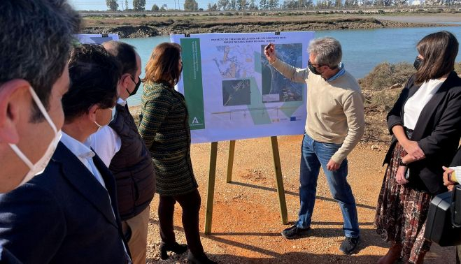 Crespo ha visitado las obras de esta senda acompañada del secretario general de Medio Ambiente de la Junta, Sergio Arjona; de la directora general de Medio Natural, Biodiversidad y Espacios Protegidos, Araceli Cabello; y del delegado territorial de Desarrollo Sostenible en la provincia de Cádiz, Daniel Sánchez Román, entre otros.